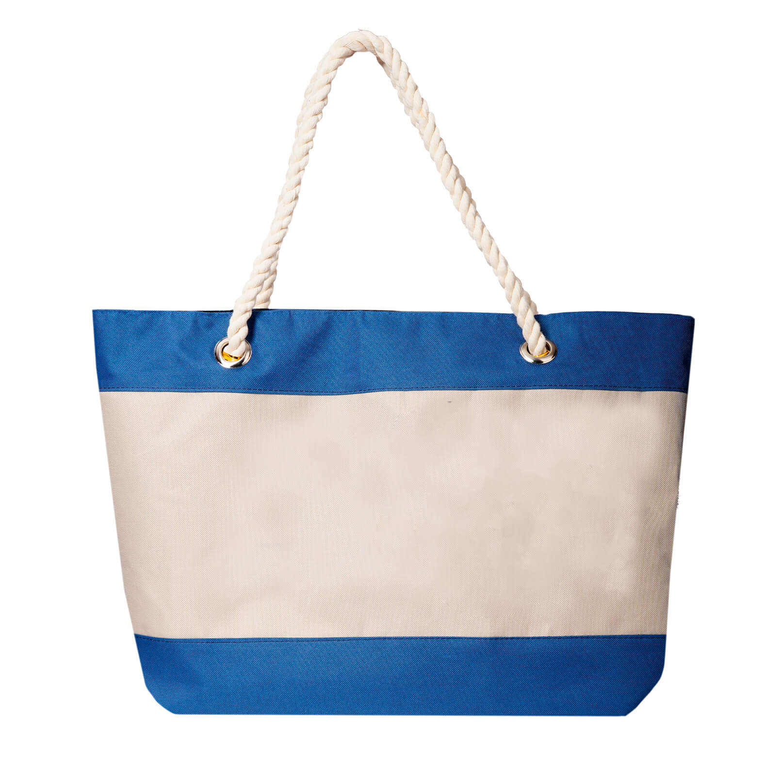 Bolsa de poliéster cosida con asas de algodón e interior forrado.