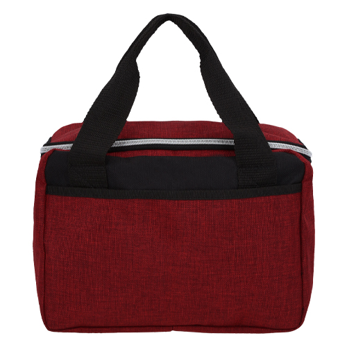 Hielera con interior impermeable sellado, asas y un compartimento externo al frente.