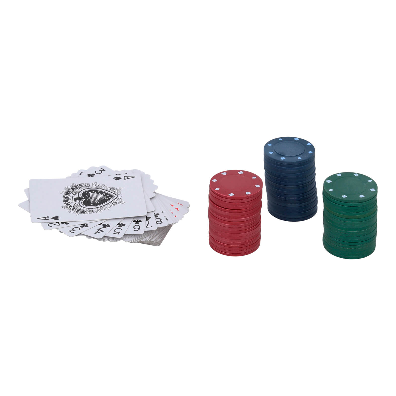 Juego de poker con 1 baraja y 60 fichas de 3 colores diferentes.