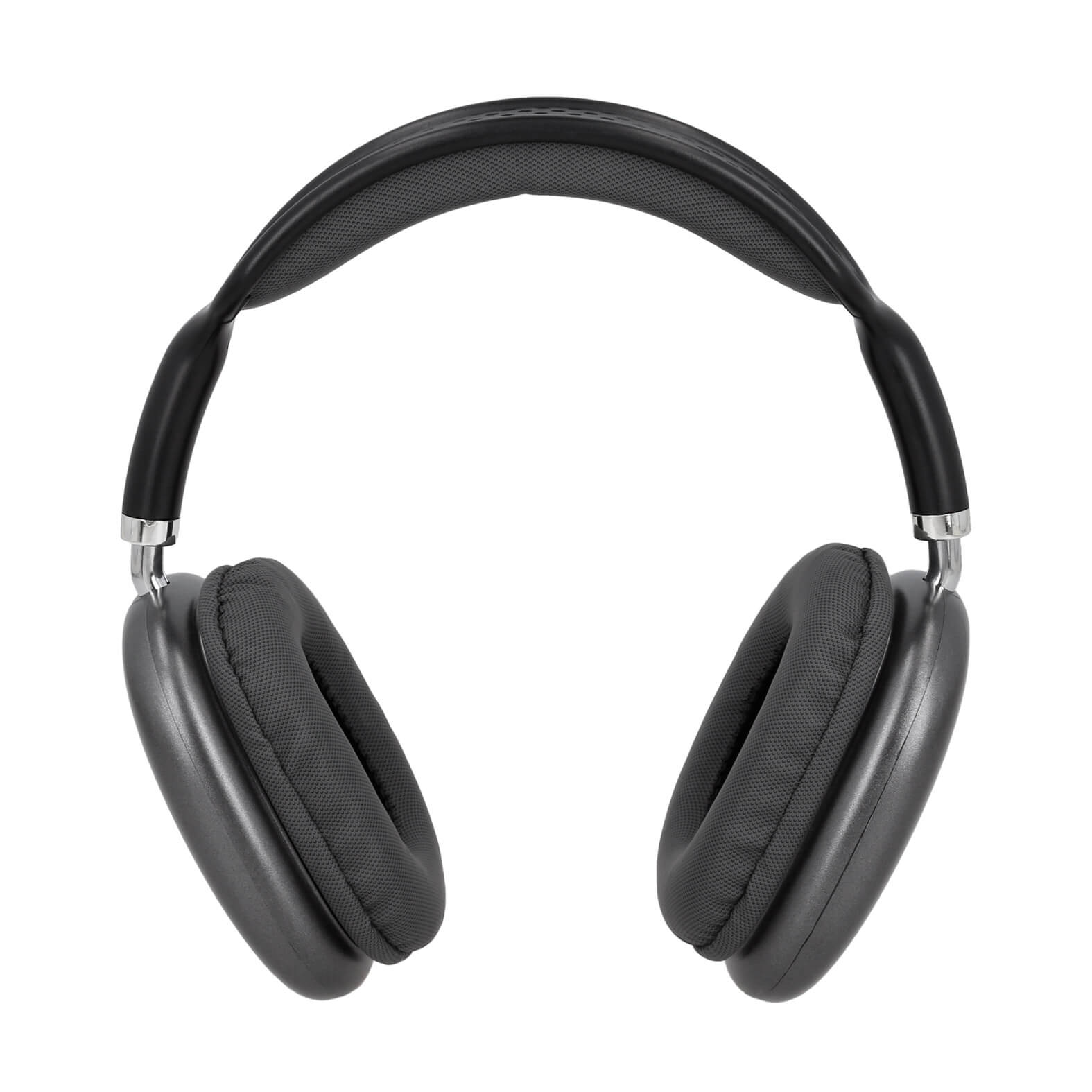 Audífonos bluetooth de plástico con función de manos libres, controles de llamada, volumen, reproducción de audio, botón de encendido y apagado que cuenta con entrada para tarjeta de memoria micro SD y auxiliar. Incluye cable de carga.