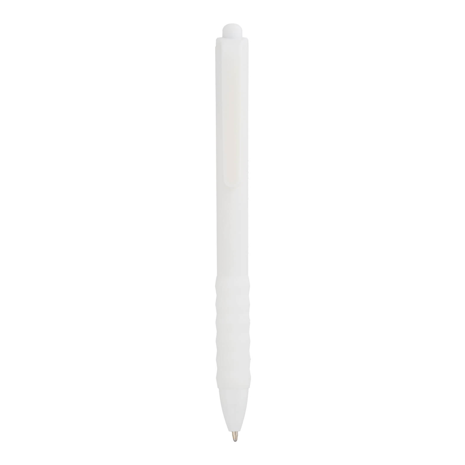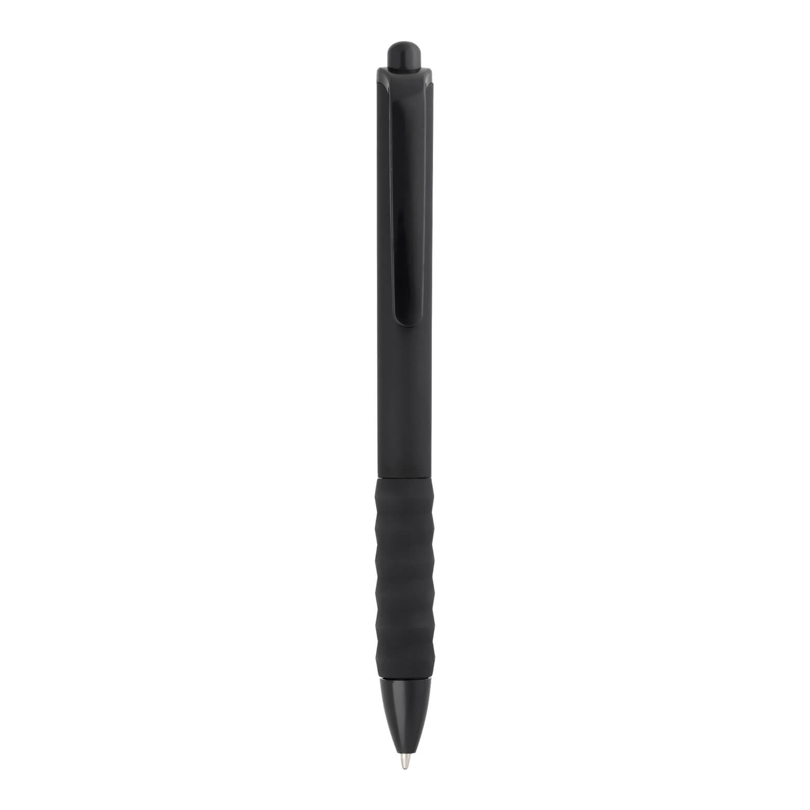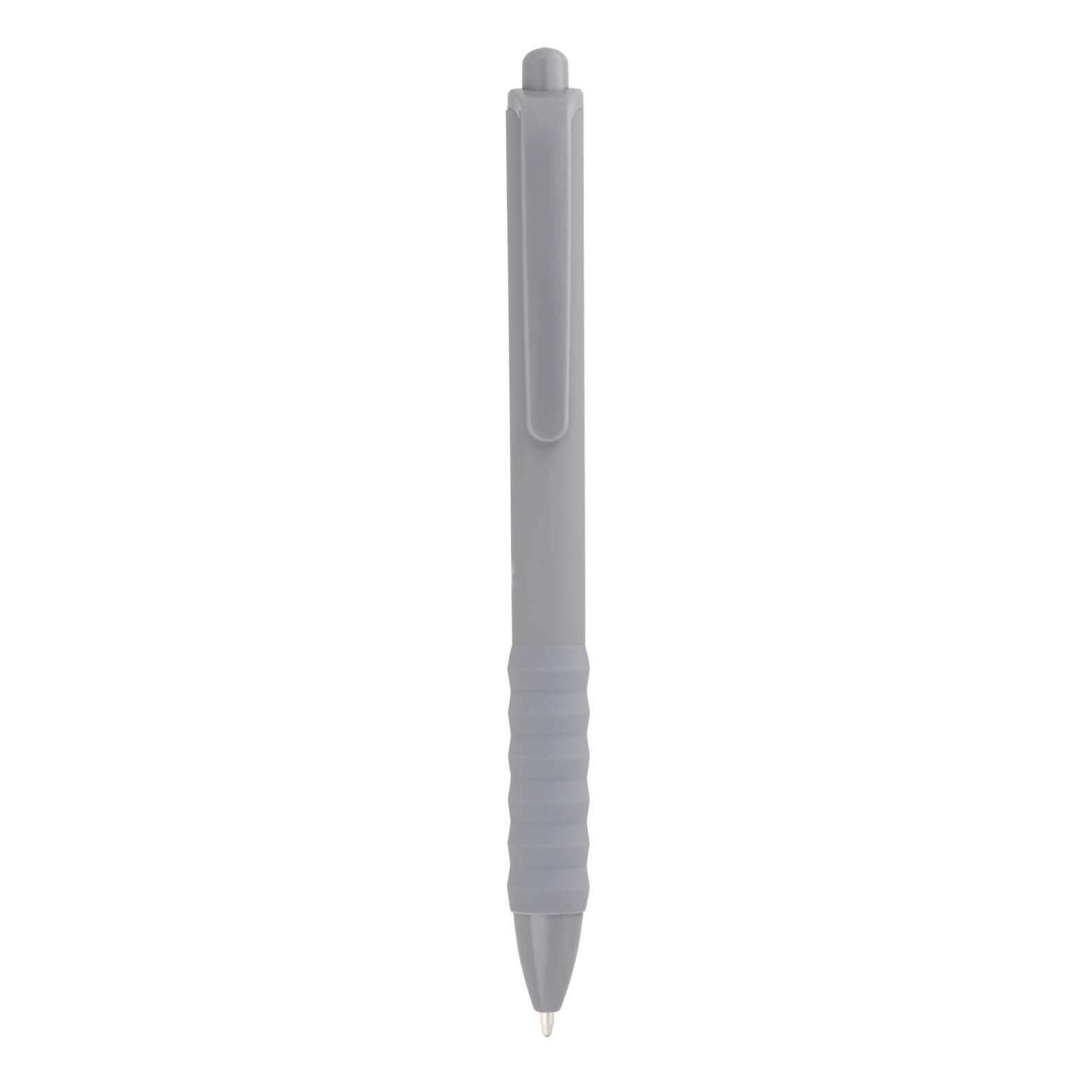 Bolígrafo de plástico con acabado rubber, grip de silicón y mecanismo de click.