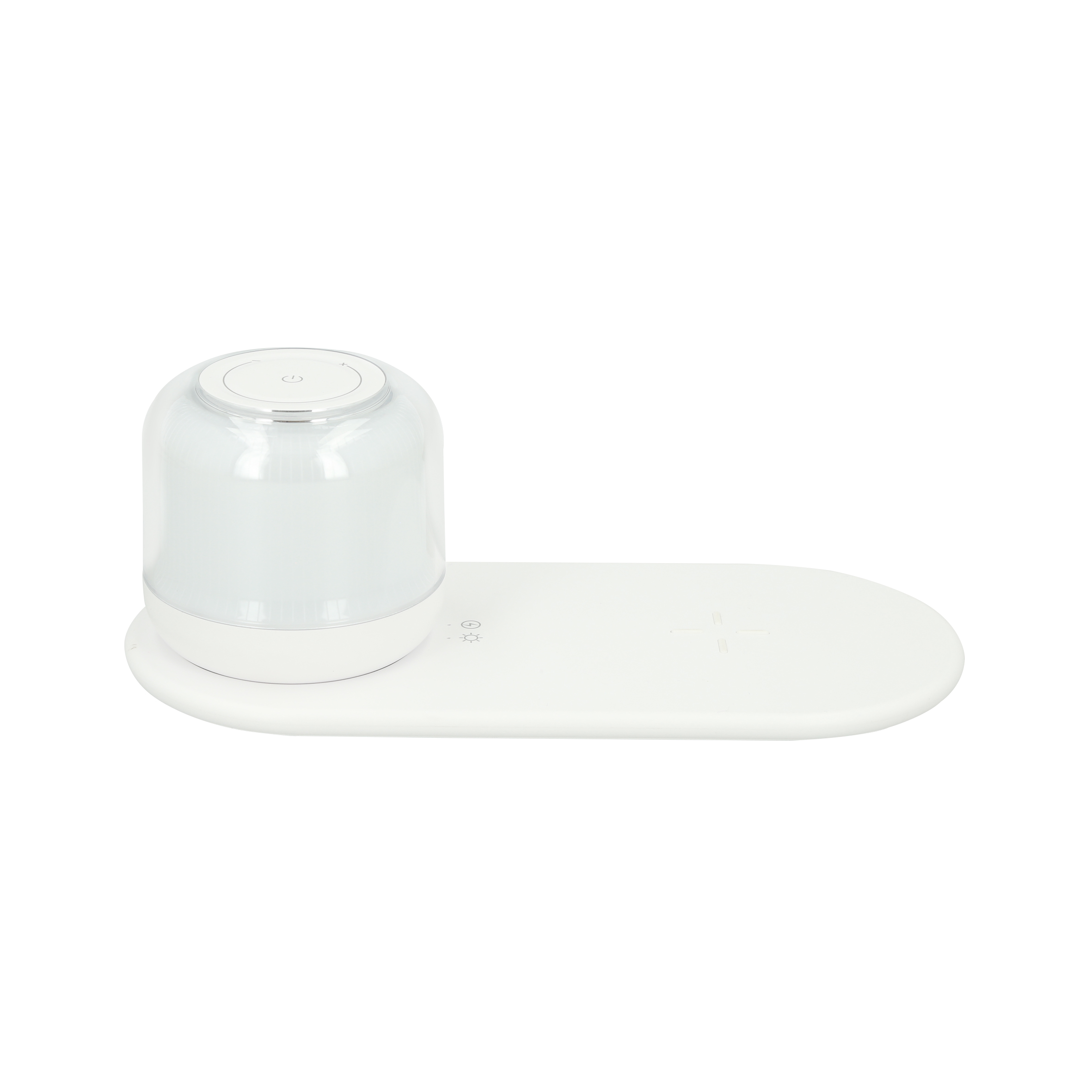 Cargador Wireless con lámpara de luz LED y ajuste de color de 360 grados, con base antiderrapante. Incluye cable de carga tipo C.