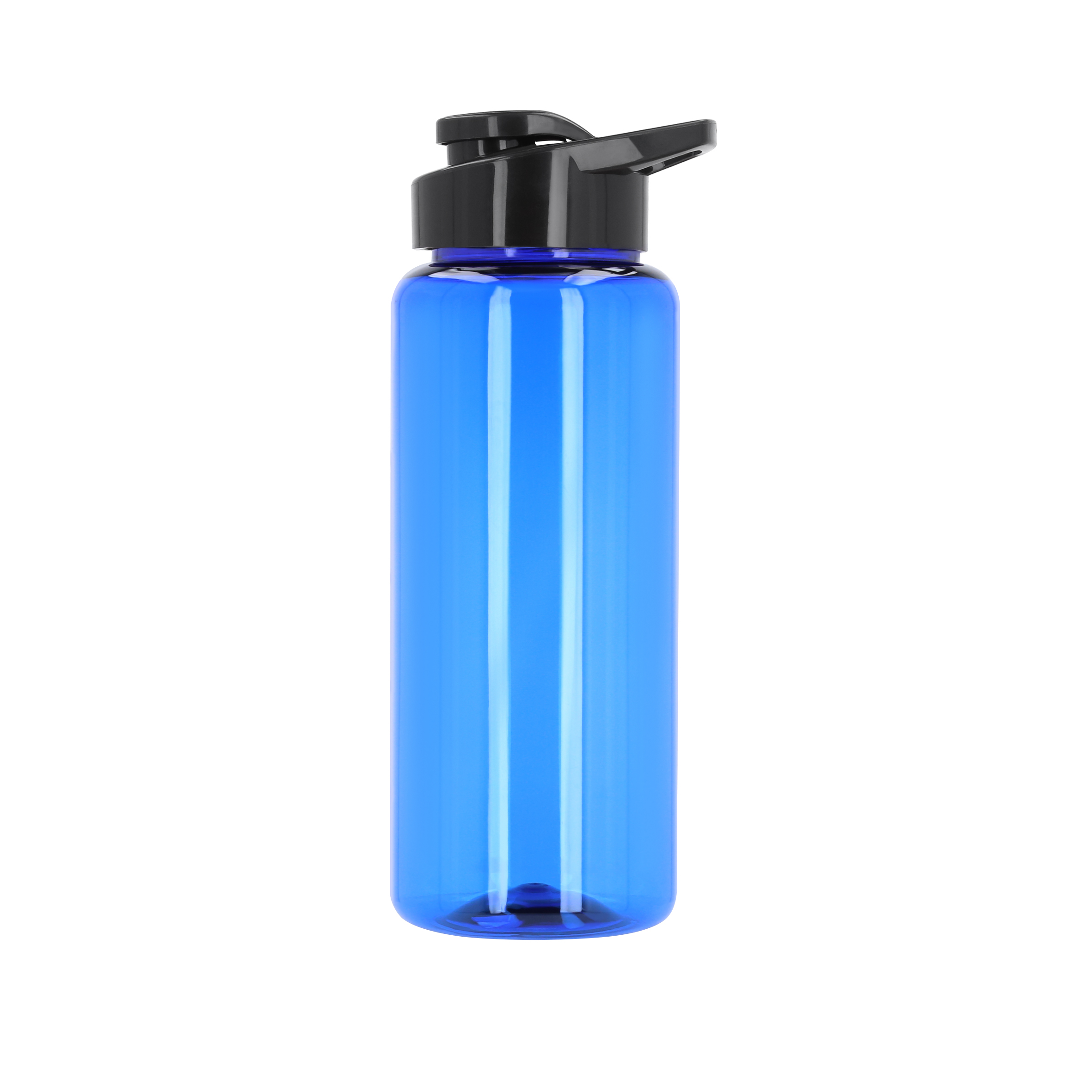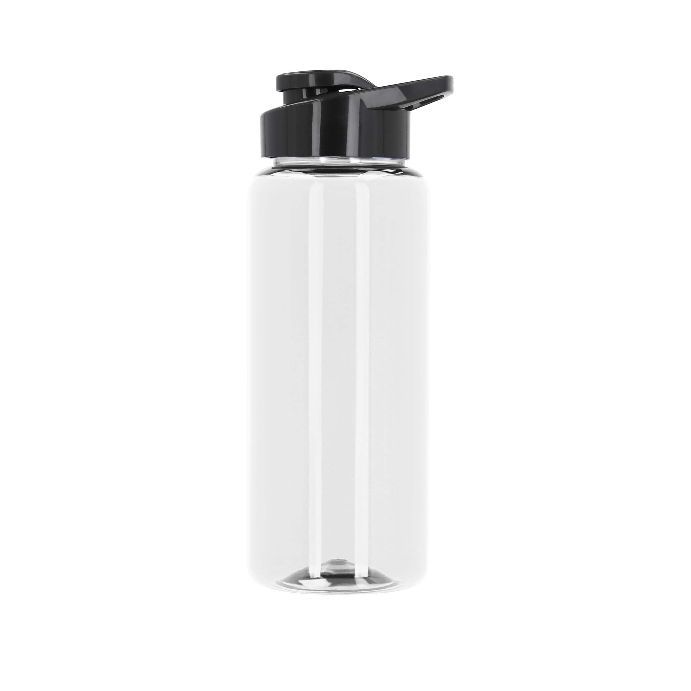 Cilindro de plástico con tapa enroscable, asa y boquilla que cierra a presión.