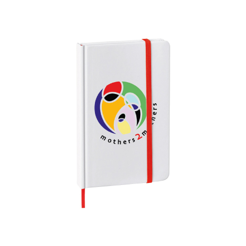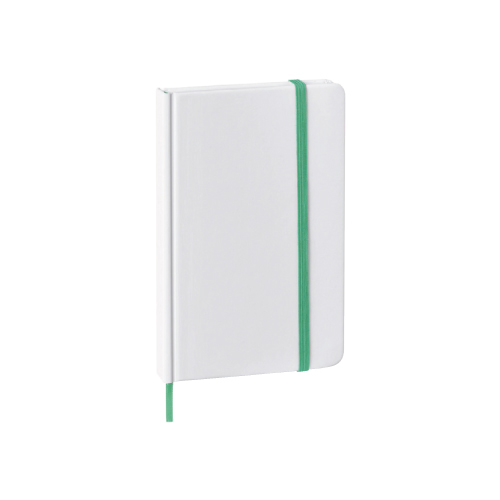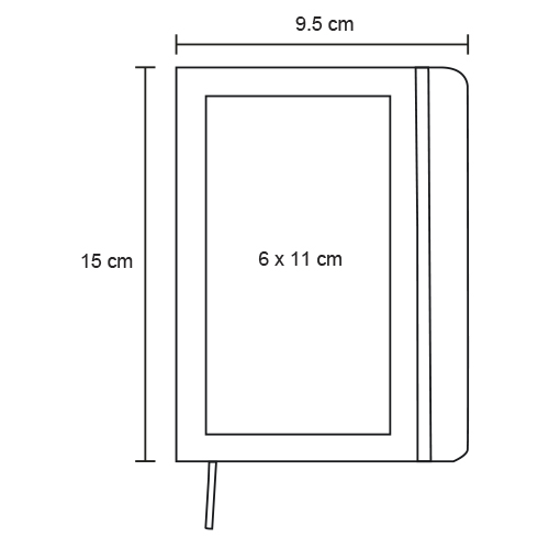 Mini libreta de poliuretano con 90 hojas rayadas y banda elástica para sujetar cubierta.