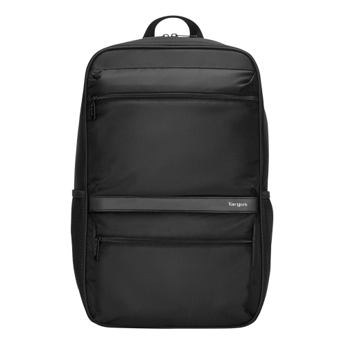 Mochila de silueta moderna que cuenta con un compartimento acolchado para computadora portátil de 15,6, correas acolchadas para los hombros, panel trasero acolchado, correa para carro, bolsillo principal, dos bolsillos de almacenamiento rápido con cremallera en la parte delantera y dos bolsillos laterales de malla para botellas de agua.