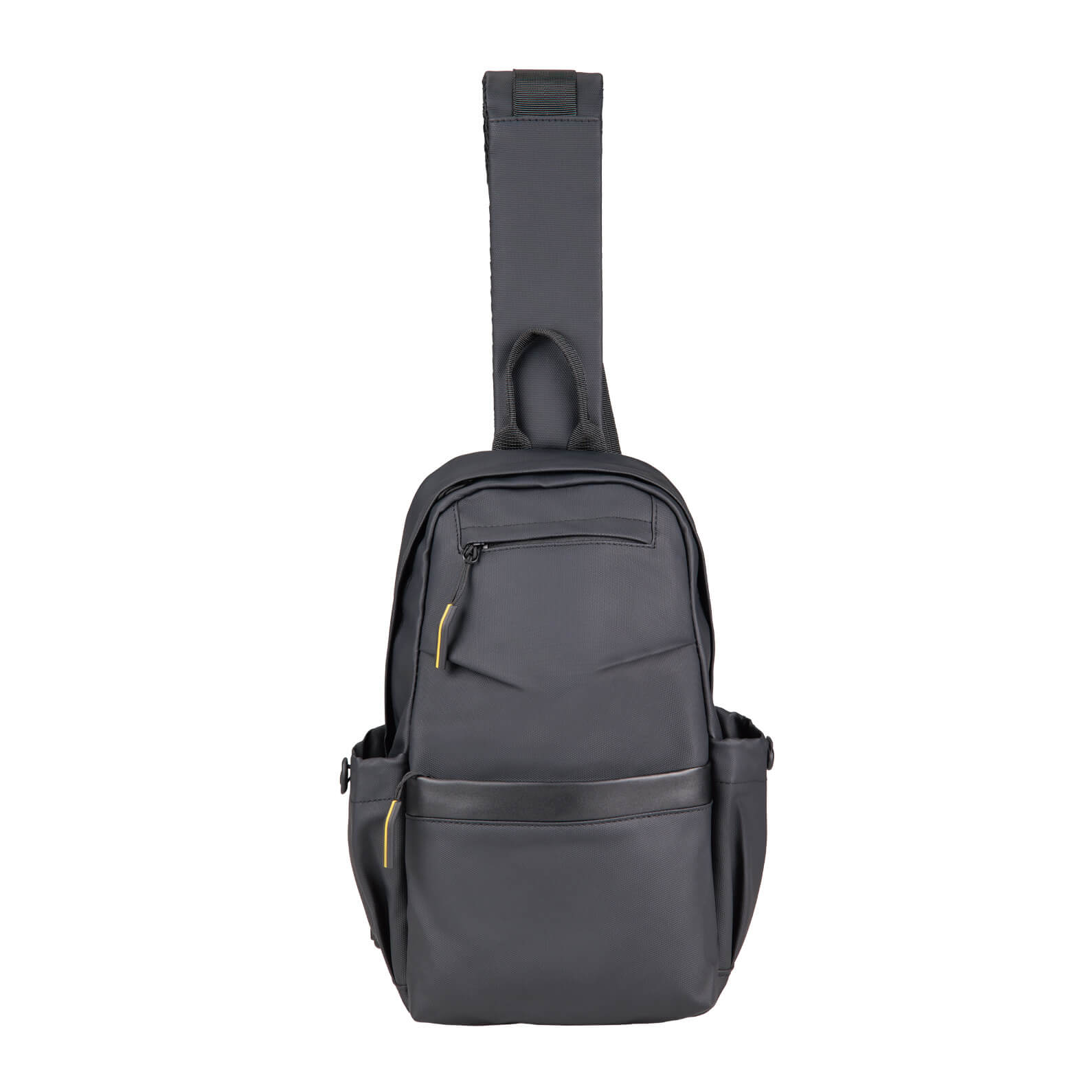 Bolsa de hombro con compartimento principal, bolsillo interno con cierre, tres bolsillos externos con cierre, dos bolsillos laterales y correa ajustable.