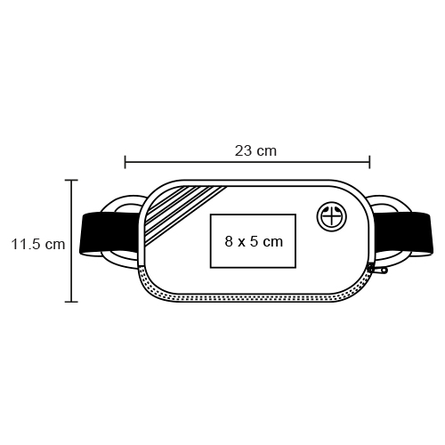 Cangurera deportiva con 2 compartimentos, doble cierre, cinturón ajustable y salida para audífonos.