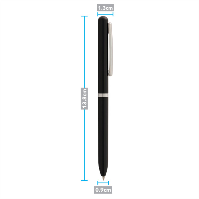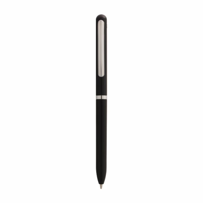 Boligrafo de plastico en colores solidos, con detalles color cromo. Mecanismo de giro. Tinta Negra. Ideal para pedidos de volumen. Economico pero de dise