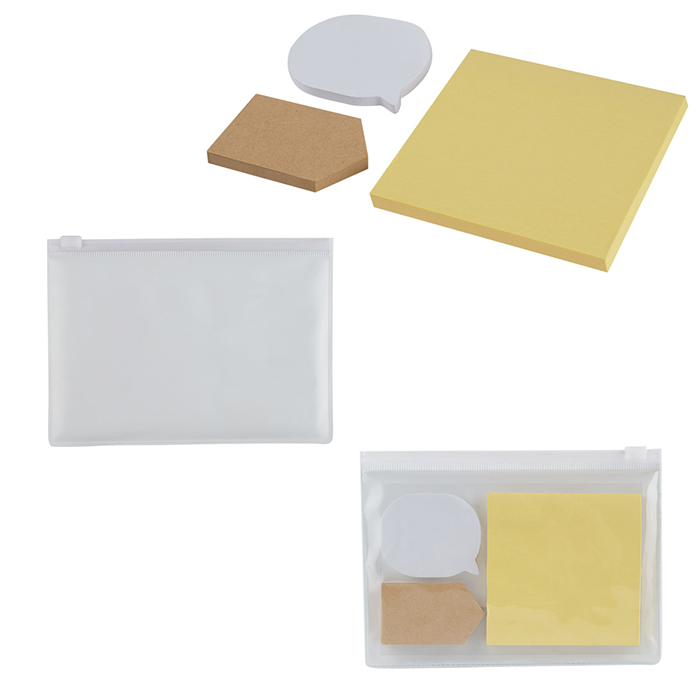 Incluye 3 block de notas adheribles de diferentes formas y colores.