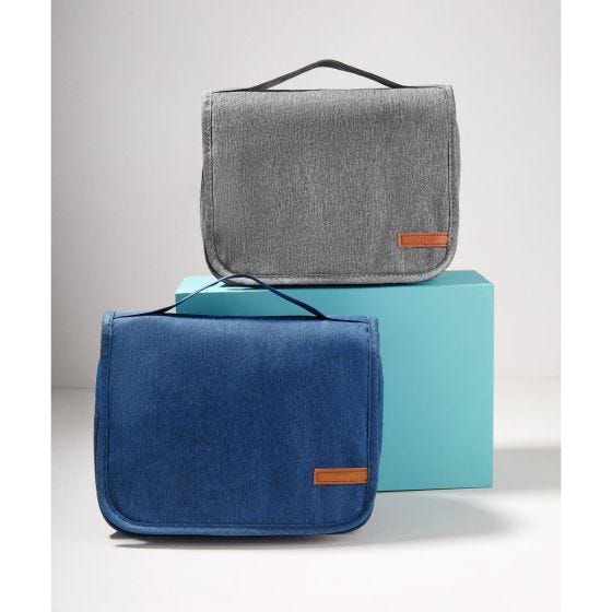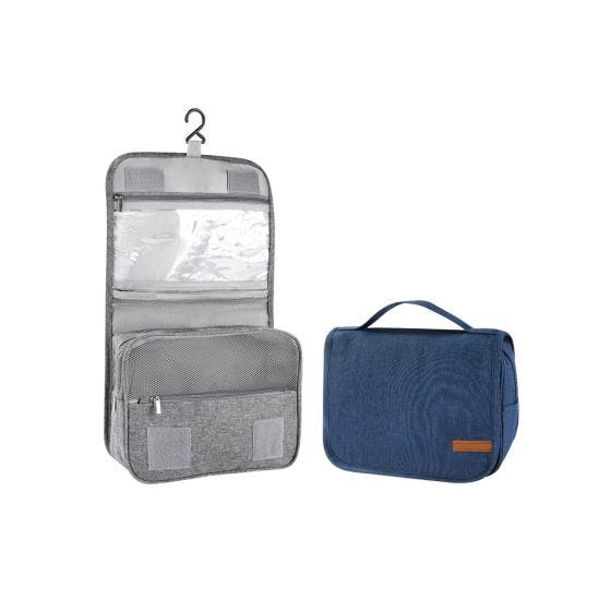 Organizador con cierre de velcro. Compartimento principal con cierre, elásticos internos, separadores de tela para una mejor organización de artículos personales y material de malla para su ventilación. Incluye bolsillo frontal con cierre, bolsillo superior impermeable, gancho de plástico para colgar, bolsillo en la parte posterior y asa superior.