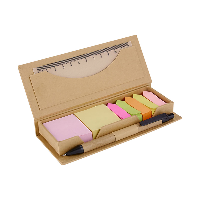 PORTA NOTAS INZIA(Incluye notas adheribles de diferentes colores, regla de 12 cm y bolígrafo ecológico.)