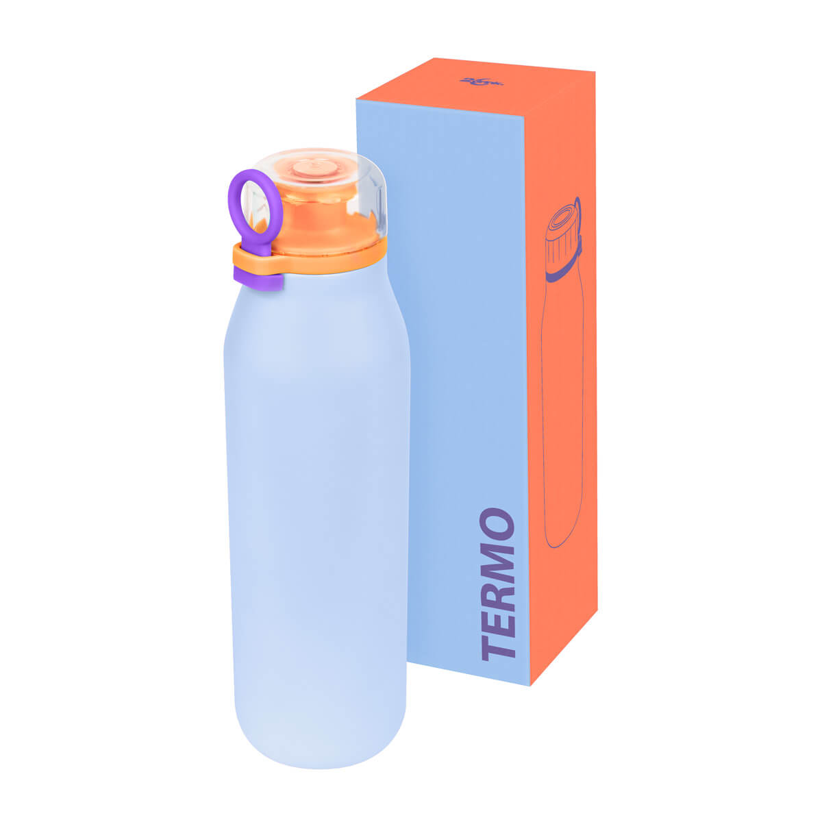 Termo doble pared. Cerrado al vacio. Pared interna y externa de acero inoxidable. Tapa son sistema de rosca y amplia boquilla para beber facilmente o verter con mayor facilidad tus bebida favoritas. Incluye una pequena asa de silicon que favorece su transporte. Diseno unico, con una divertida fusion de colores cuidadosamente seleccionados, que lo convierten en un accesorio exclusivo, moderno y diferente a cualquier otro. Mantiene temperatura caliente 6 hrs y temperatura fria 6 hrs. Capacidad 20 Oz. Incluye caja individual.