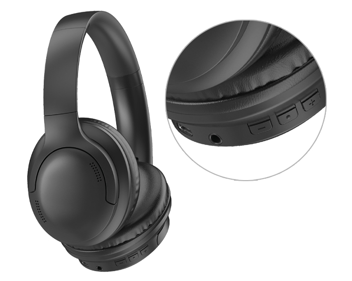 Audífonos estéreo Bluetooth de cancelación de ruido plegables, con diadema ajustable y acolchada, almohadillas que giran a 90° y función de manos libres. Cuentan con entrada de carga tipo C (cable incluído), AUX. (cable incluído), botón de encendido/apagado y botones de control de sonido. Distancia del Bluetooth de 10 m. Compatibles con dispositivos iOS e Android. Presentación: caja de regalo a color.