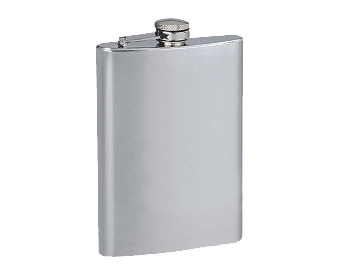Licorera de bolsillo de acero inoxidable con tapa enroscable. CAP: 8 OZ