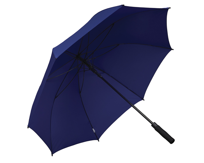Paraguas de golf antiviento con botón de apertura automático, varillas y eje de fibra de vidrio, mango de EVA. 8 gajos.