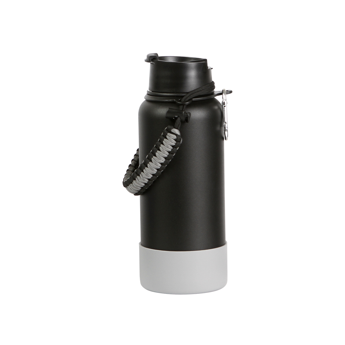 Botella deportiva, fabricada en acero inoxidable doble pared. Cuenta con capacidad de 1,000 ml. Incluye arnés, correa con detalles en gris y base de silicon.
