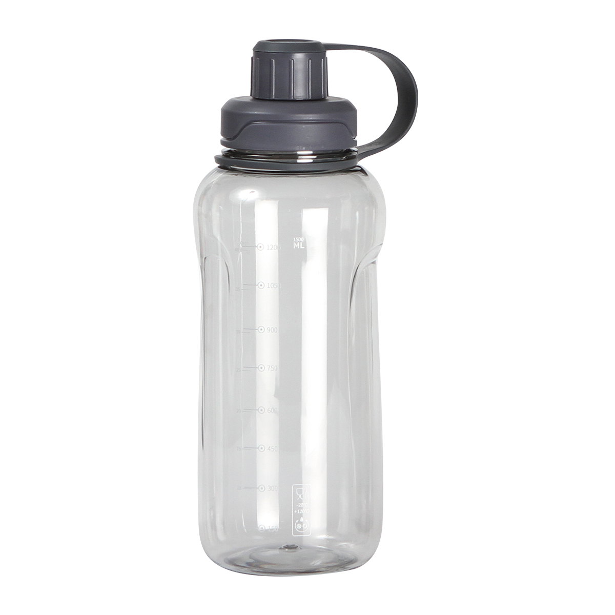 Botella deportiva fabricada en policarbonato con tapa de rosca fabricada en PP y asa de PE. Fabricada en materiales de grado alimenticio, ideal para bebidas frías o calientes; no usar en microondas. Capacidad de 1,500 ml (50.5 oz). Puede soportar temperaturas de -20°C a 99°C. Tapa a prueba de escurrimientos o fugas.