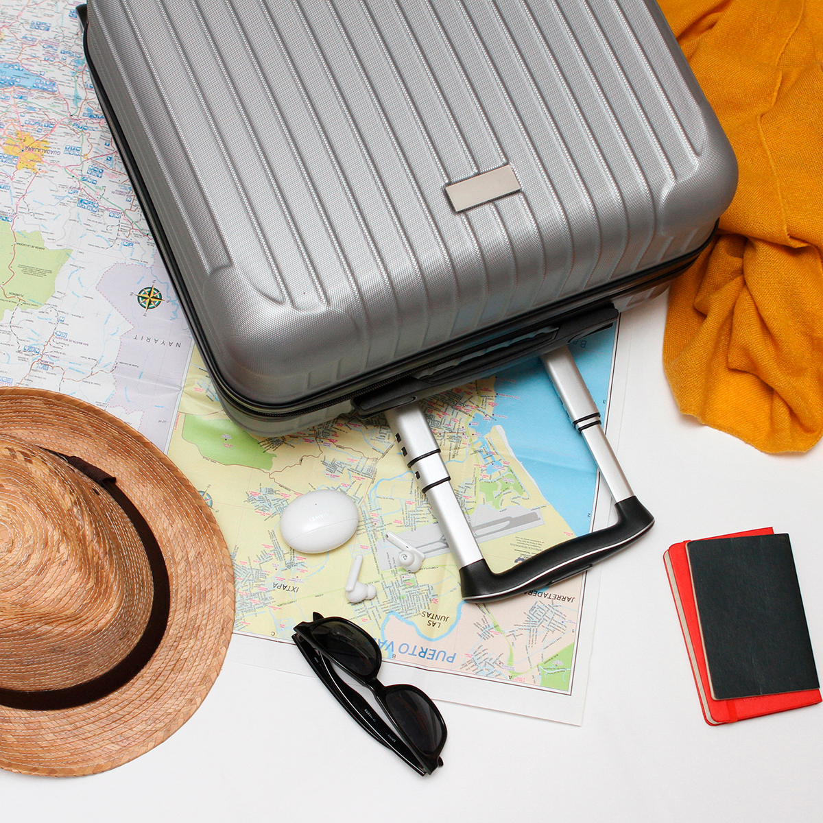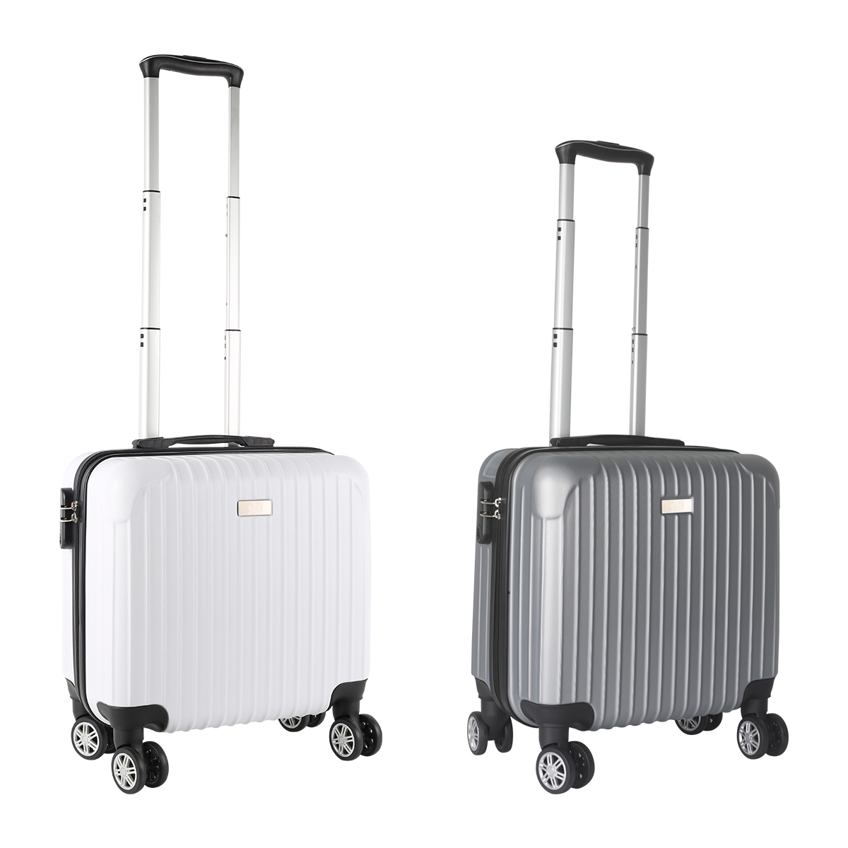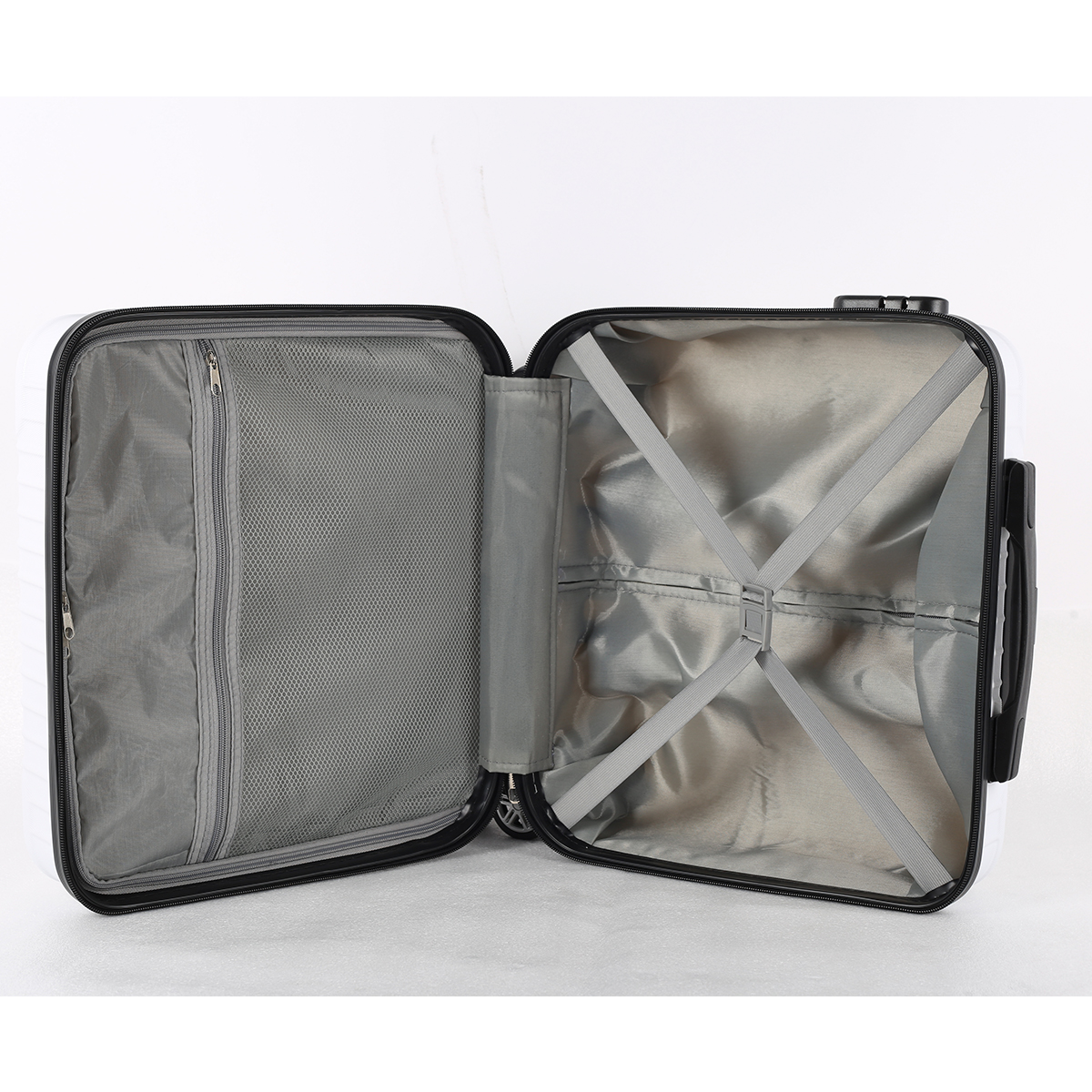 Maleta rígida de viaje tipo carry on con ruedas fabricada en ABS con mango retráctil de aluminio interiores en poliéster, chapa de seguridad, placametálica, compartimento interior con cierre y tensor para ropa.