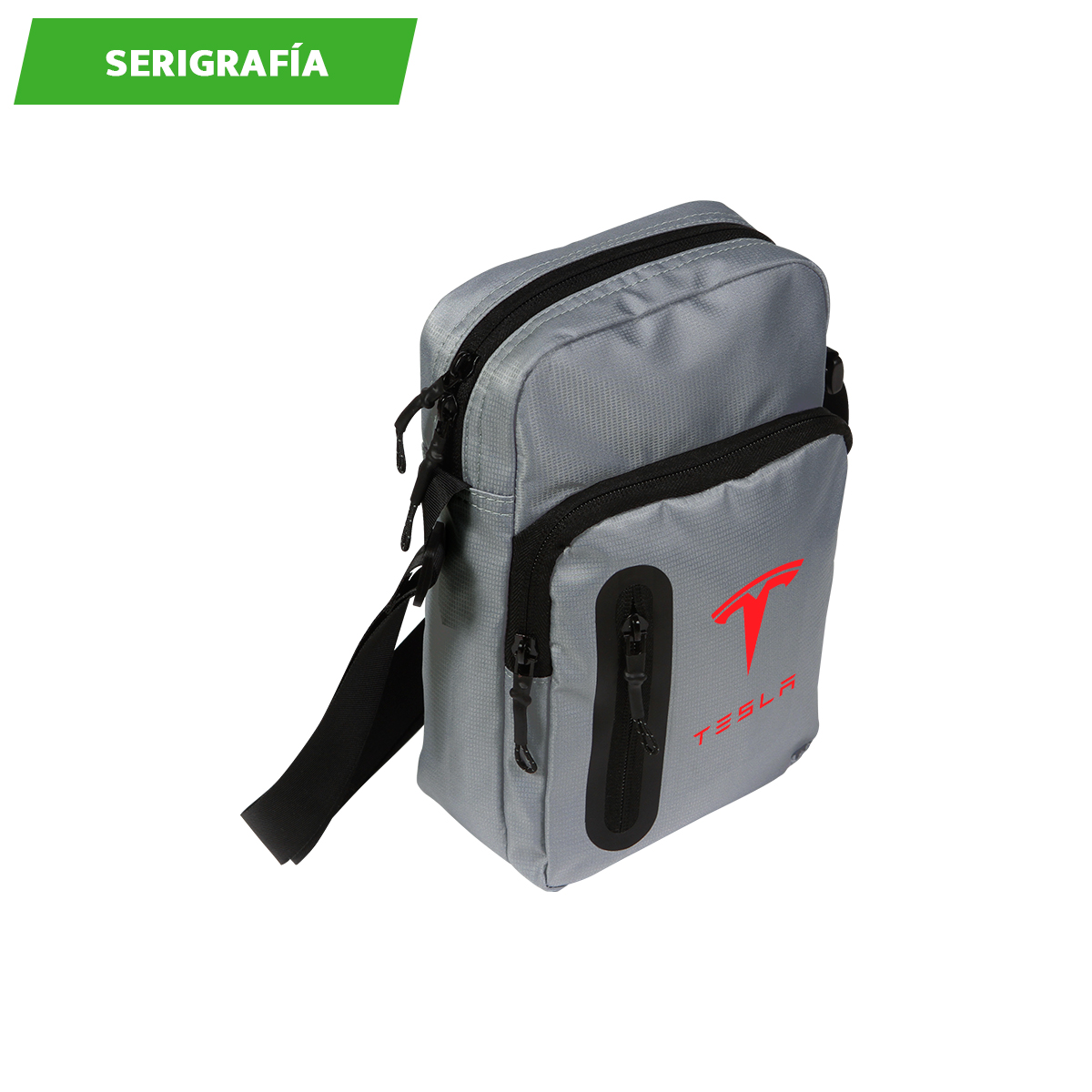 Mochila de hombro fabricada en ripstop y curpiel, con cierre frontal y bolsa trasera con velcro.