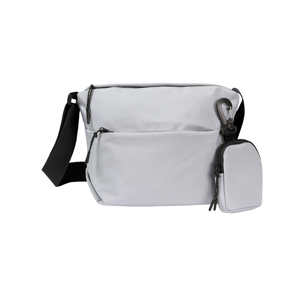 Set de bolsa con correa y bolsillo fabricados en poliéster y relleno de espuma. Con correas y compartimentos con cierres.