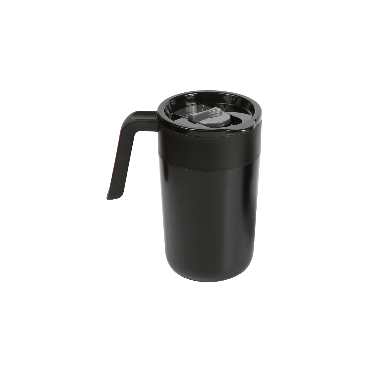Taza para café, fabricado en acero inoxidable, con asa y tapa fabricadas en plástico. Capacidad de 400 ml. (14 onzas). Su diseño resistente la convierten en una opción ideal para llevar tu café contigo. Está fabricado en materiales de grado alimenticio y el acero inoxidable permite mantener la temperatura de tus por más tiempo. No usar en microondas. Incluye caja individual.