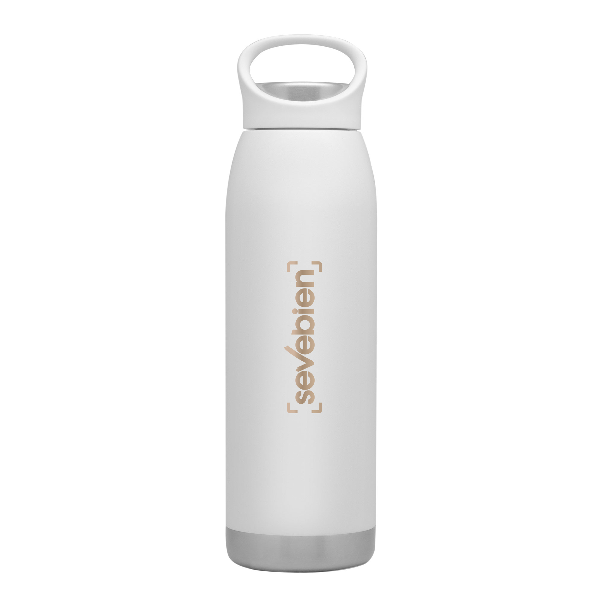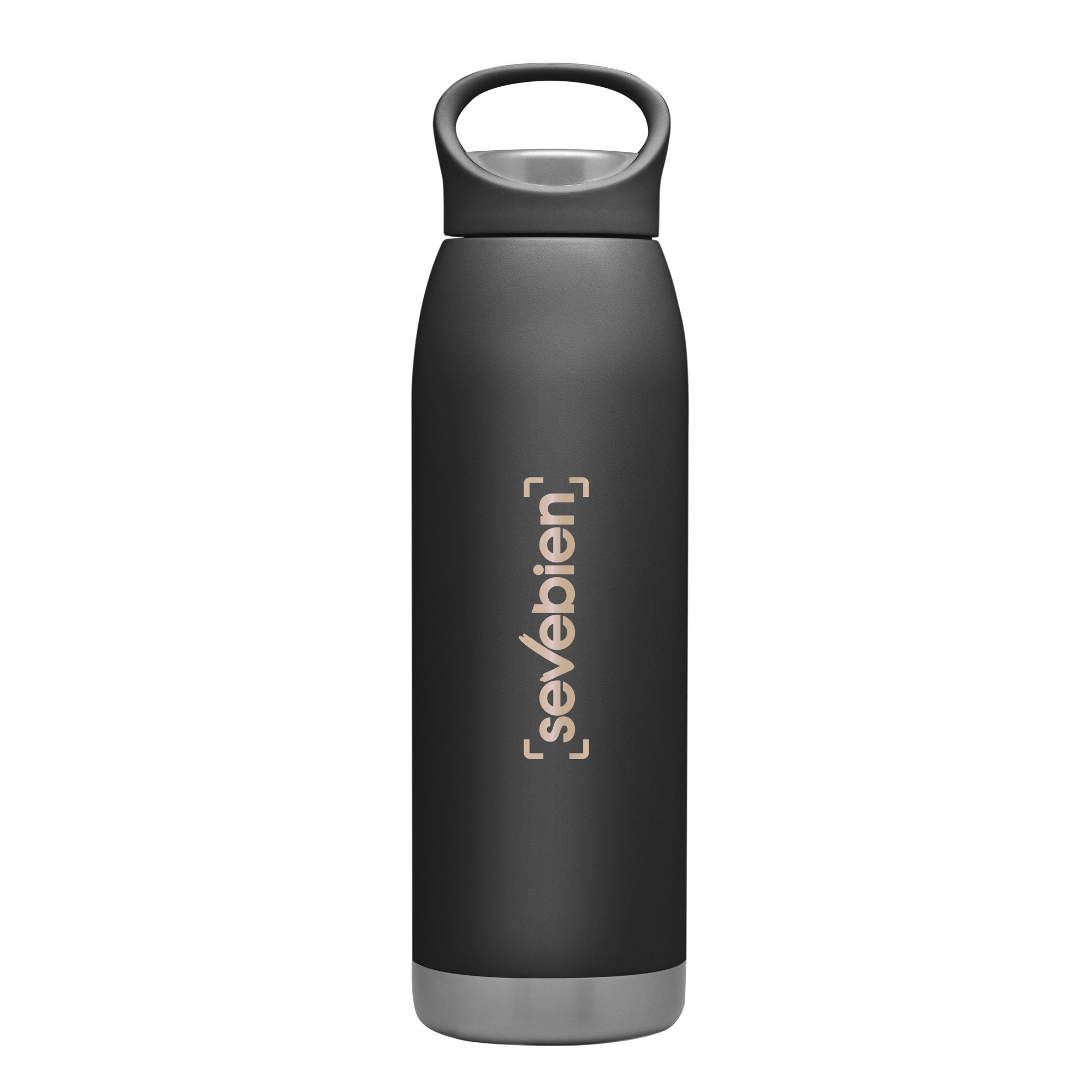 Botella doble pared, sellada al vacío. Interior en acero 304 y exterior en acero 201. Pintura en colores mate. Tapa combinada en plástico del mismo color de la botella y acero inoxidable 201. Mantiene hasta 12 hs la temperatura de las bebidas calientes y 24 hs de las bebidas frías. Presentación en caja de regalo.