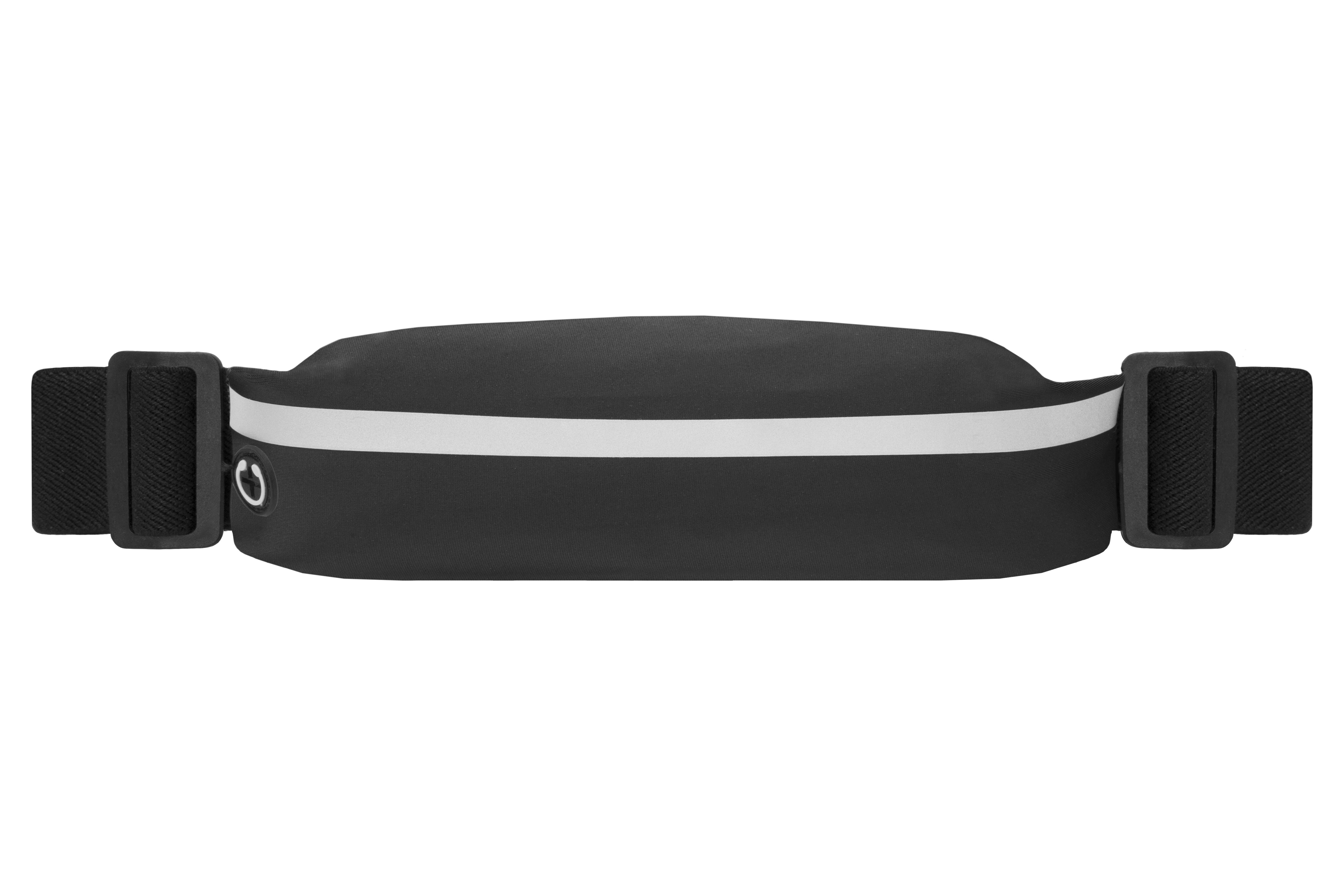 Un bolsillo con cierre, salida para auriculares, banda reflectante y correas elásticas. El material es impermeable.