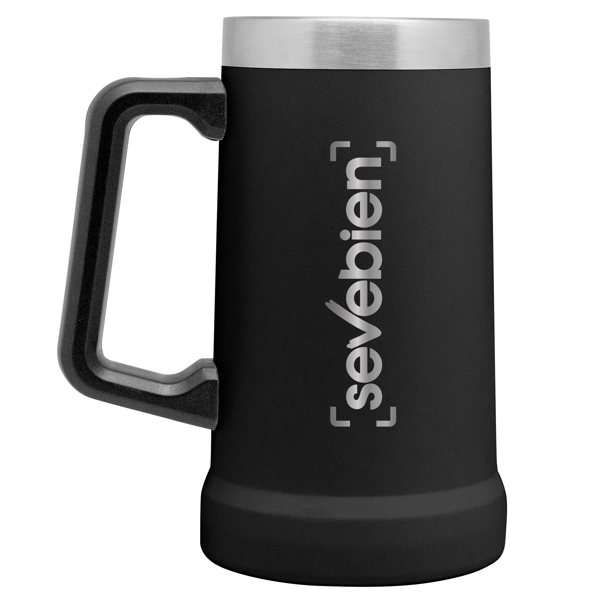 Ø 10 x 17cm. Capacidad 700 ml. Acero inoxidable. Jarro cervecero doble pared, sellado al vacío. Interior en acero 304 y exterior en acero 201. Mango Plástico. Pintura Powder coat (pintura más duradera y resistente a la corrosión y el paso del tiempo). Presentación en caja de regalo.
