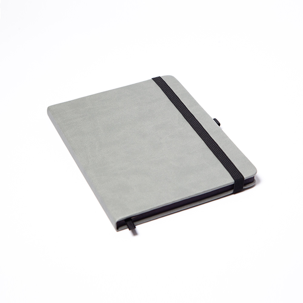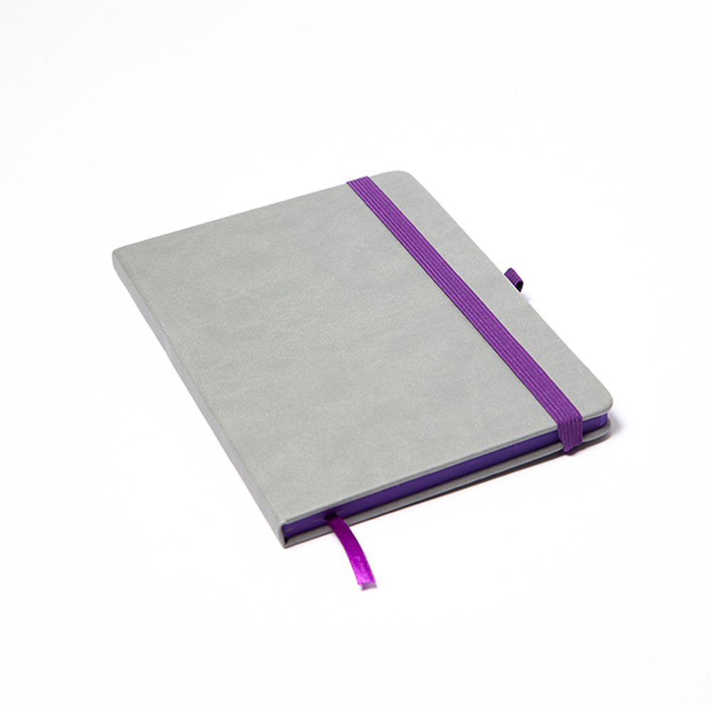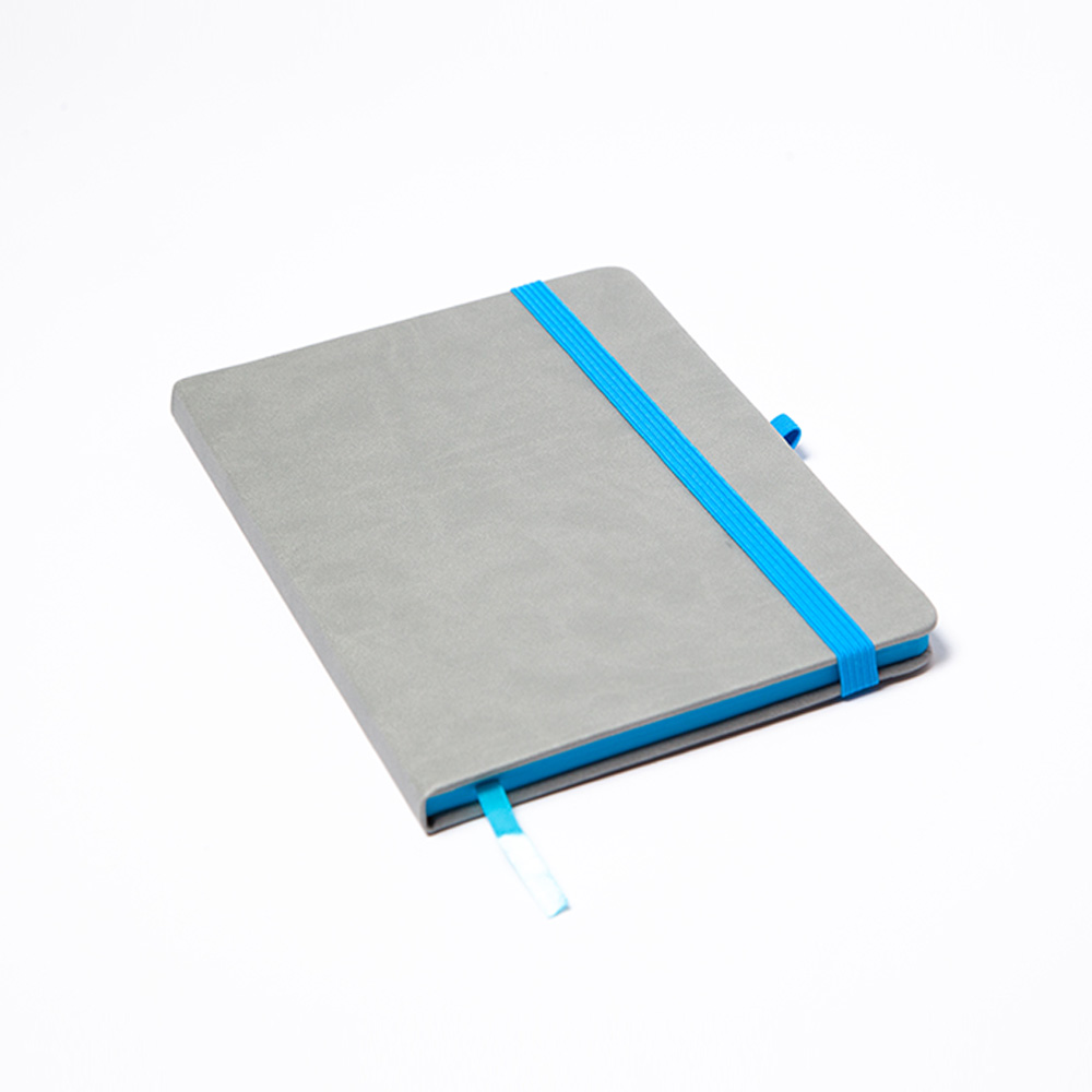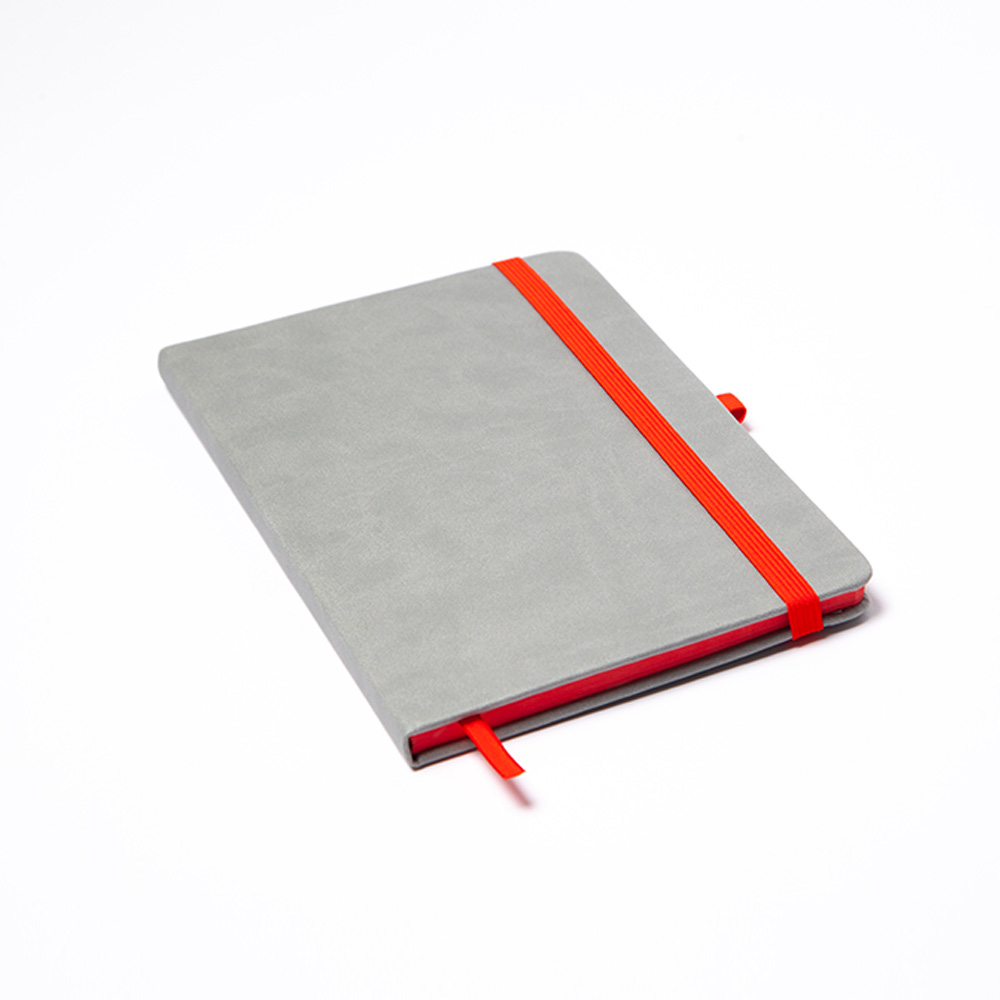 Libreta con cubierta dura de PU. Canto, banda elástica, porta bolígrafo y separador del mismo color; con 80 hojas rayadas.