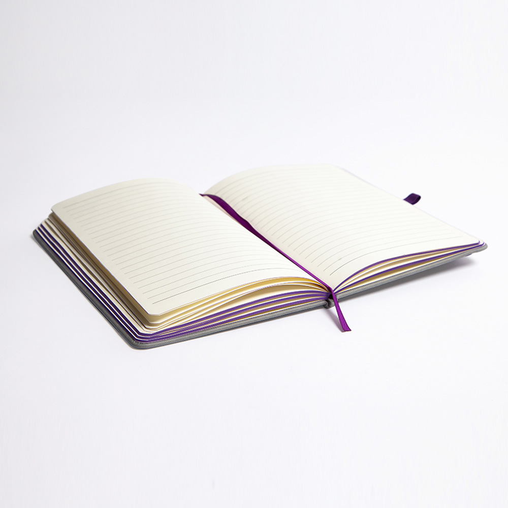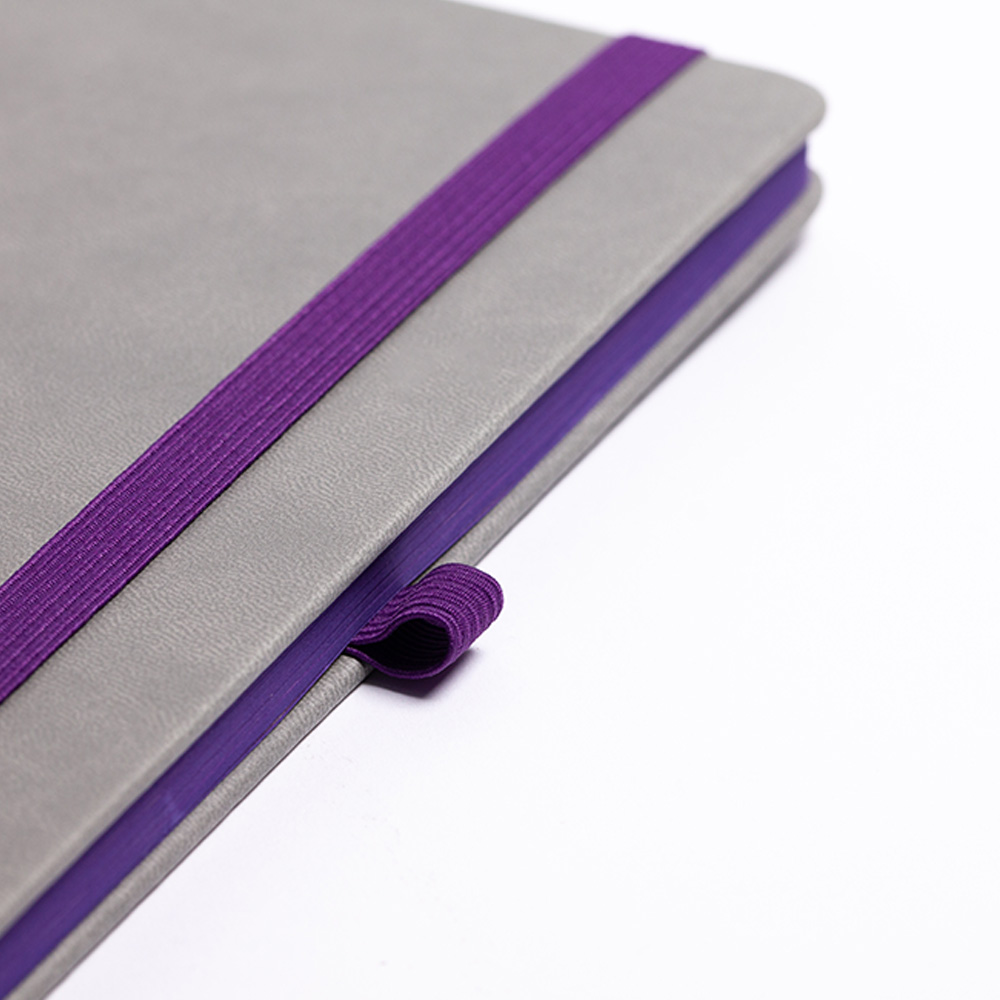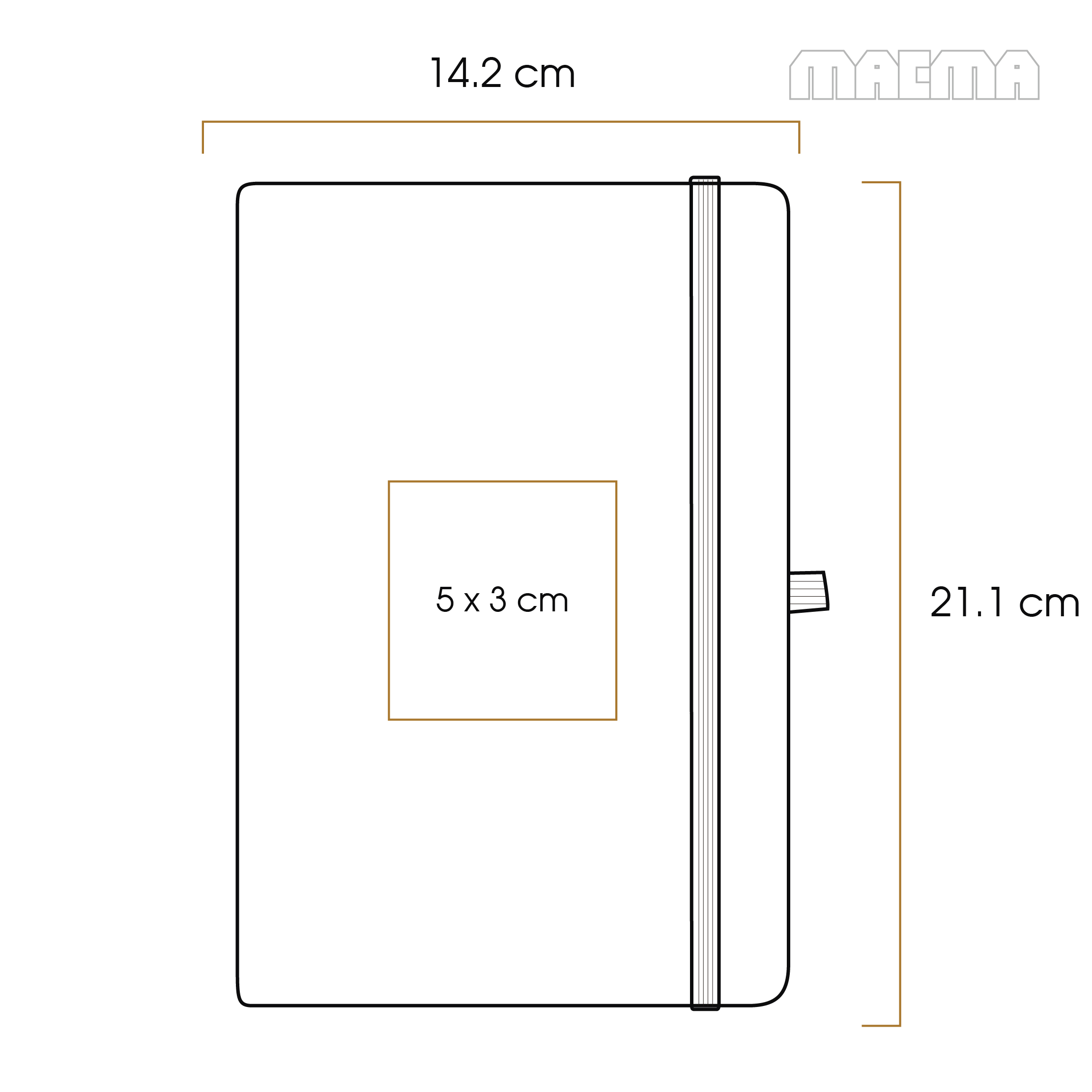 Libreta con cubierta dura de PU. Canto, banda elástica, porta bolígrafo y separador del mismo color; con 80 hojas rayadas.