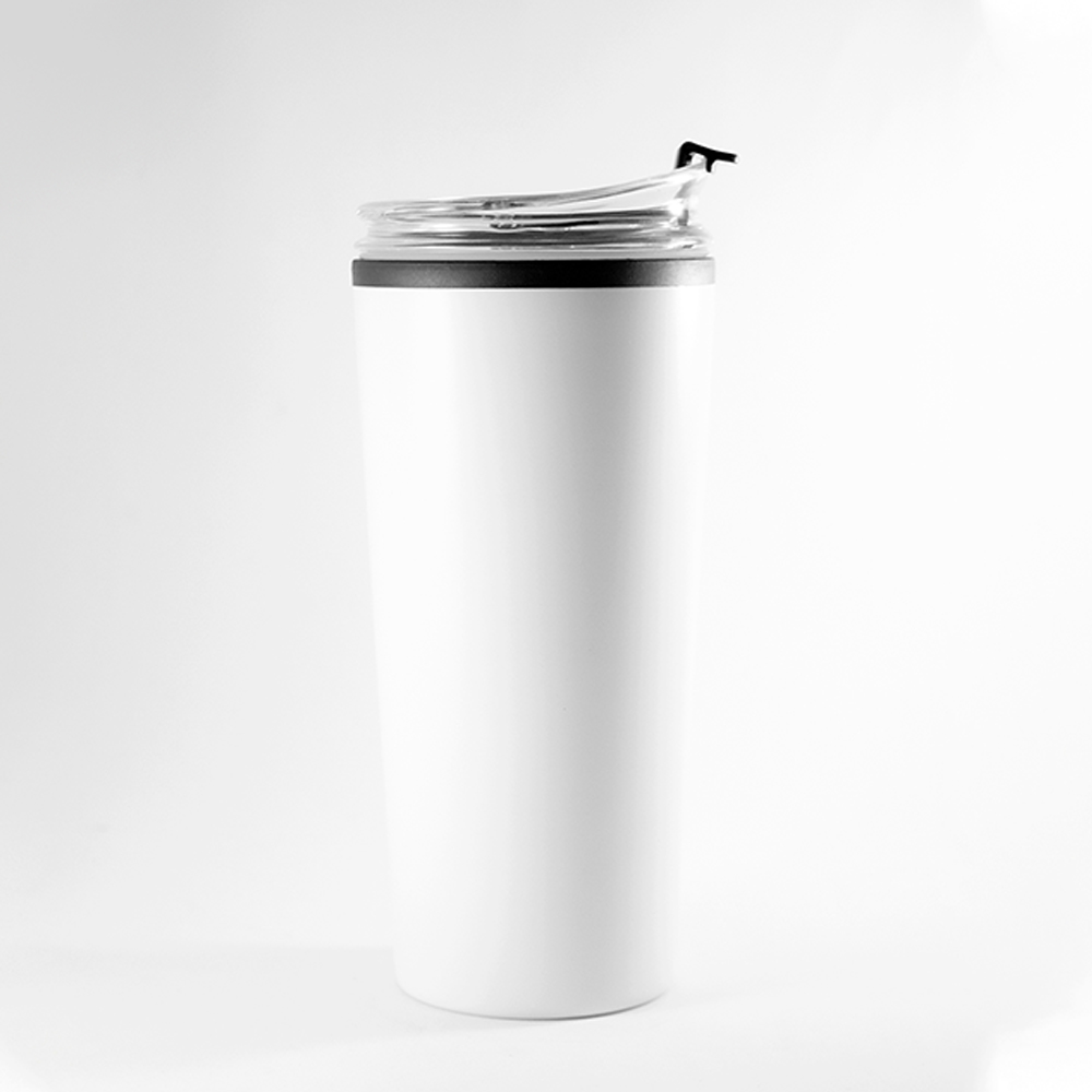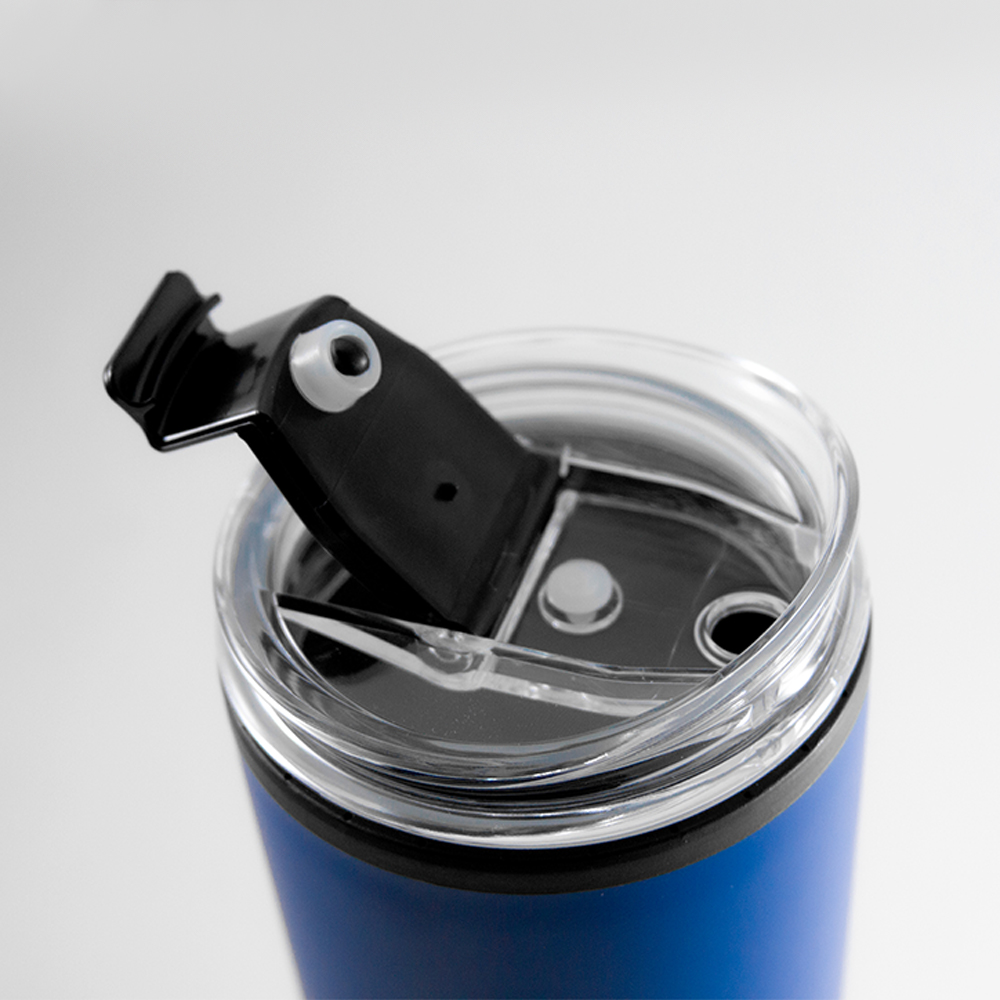 Termo de acero inoxidable y plástico con capacidad de 400 ml. Tapa de rosca.