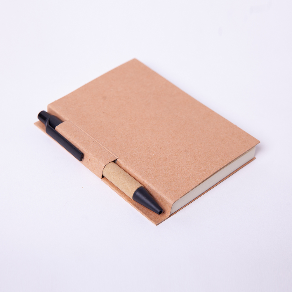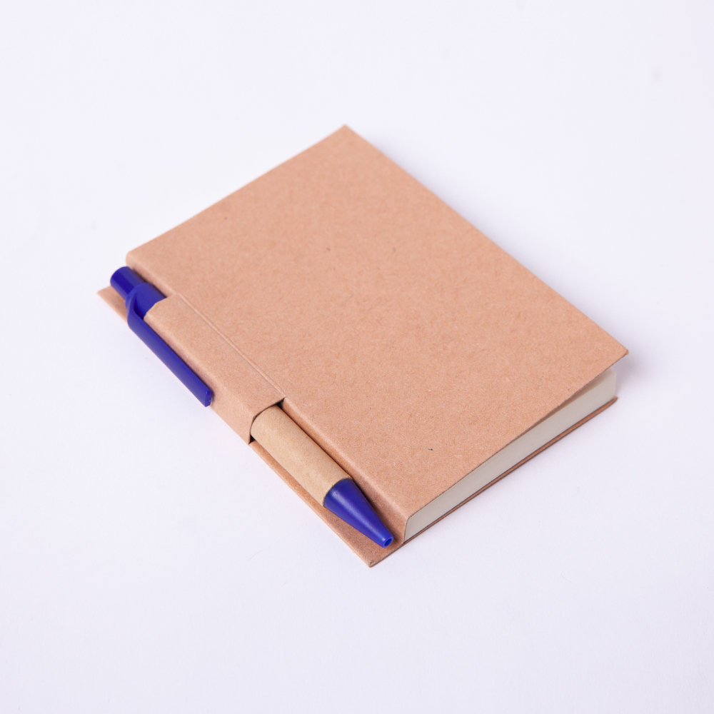 Libreta con 80 hojas rayadas en papel reciclado y bolígrafo