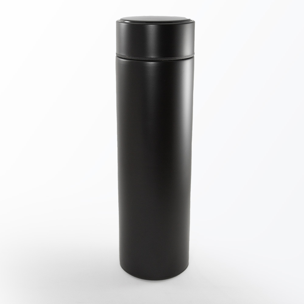 Termo de acero inoxidable de doble pared insulada al vacío para mantener las bebidas frías o calientes por más horas. Tapa con patalla led con sensor de temperatura para tu bebida. Incluye batería con duración de 500 días. Capacidad de 500 ml.