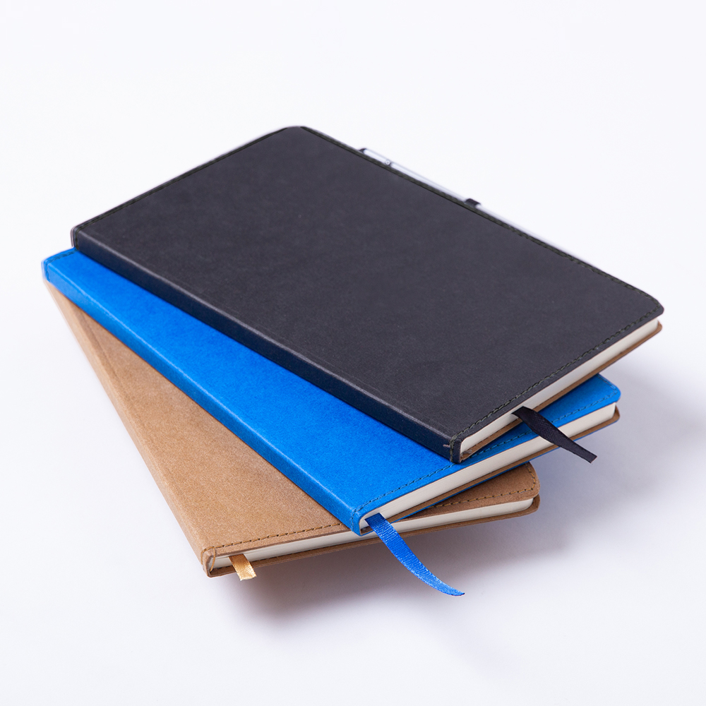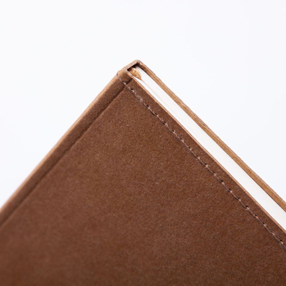 Libreta ecológica elaborada con cubierta dura de papel Kraft lavable. Porta bolígrafo y separador; con 80 hojas rayadas.
