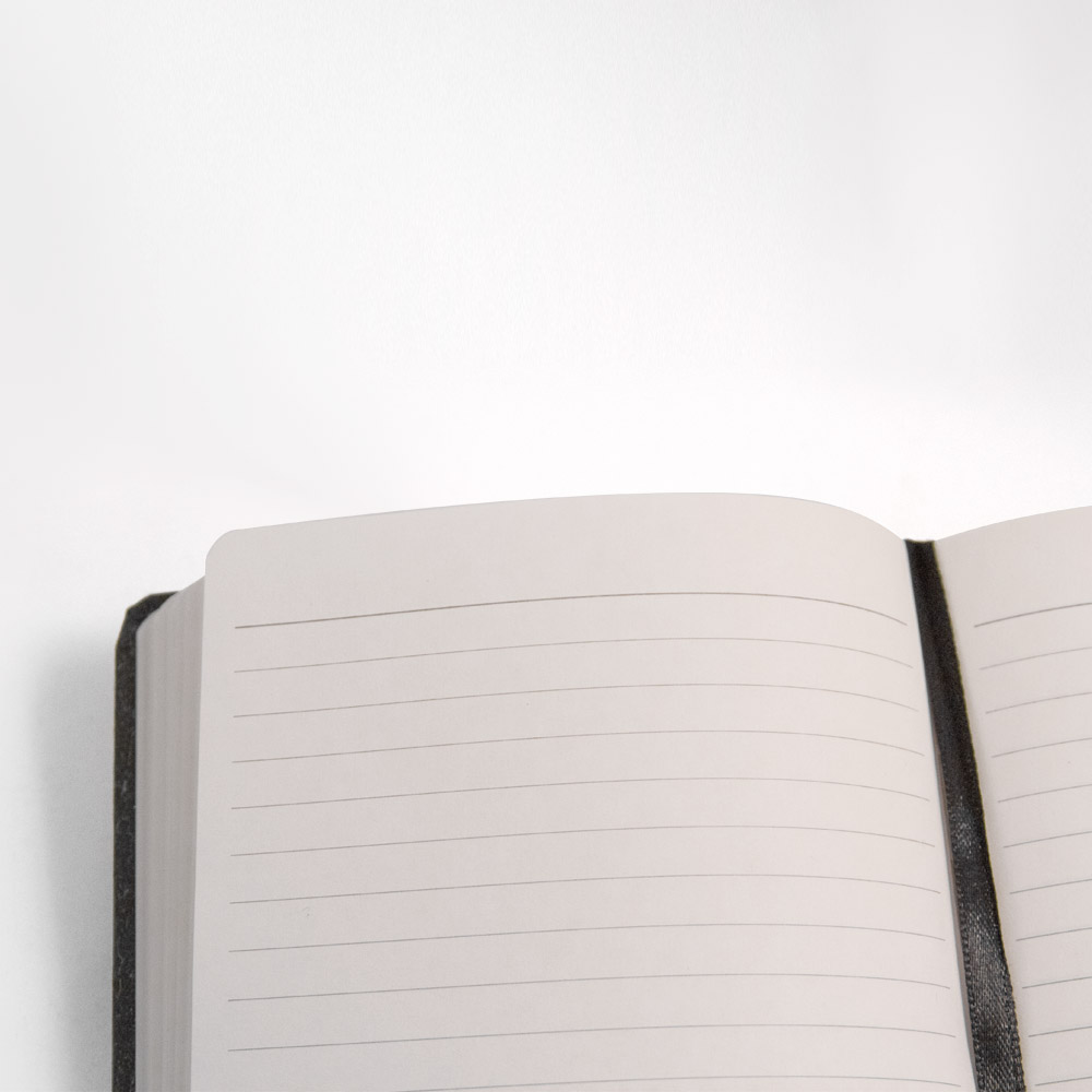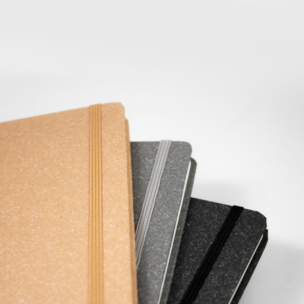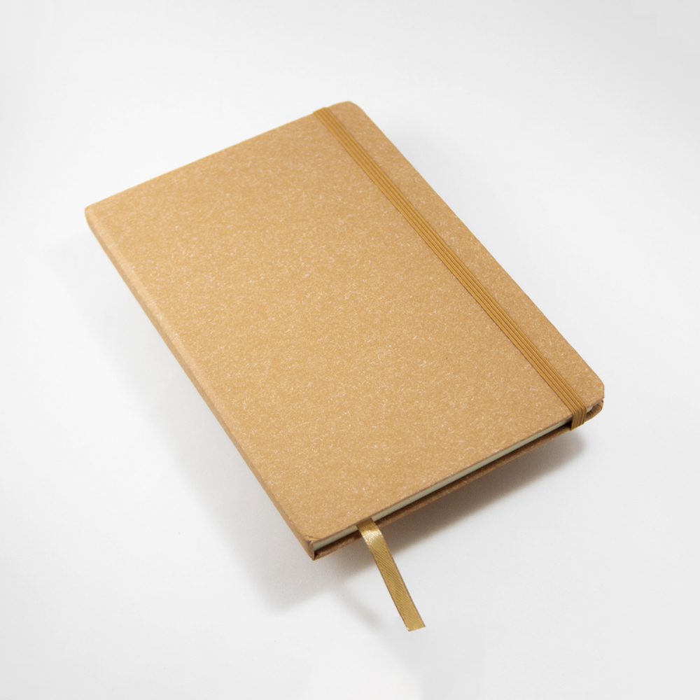 Libreta ecológica con cubierta dura de cartón. Banda elástica y separador; con 80 hojas rayadas.